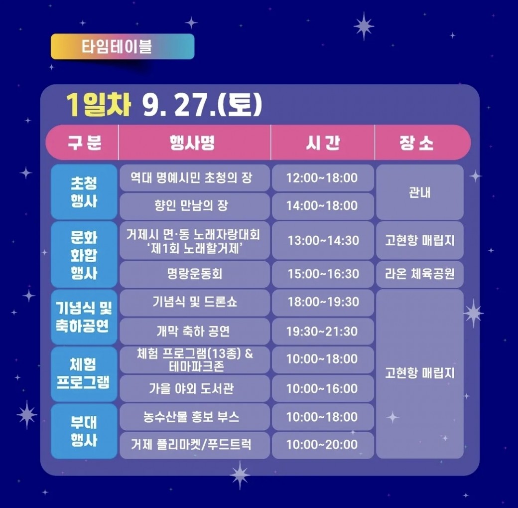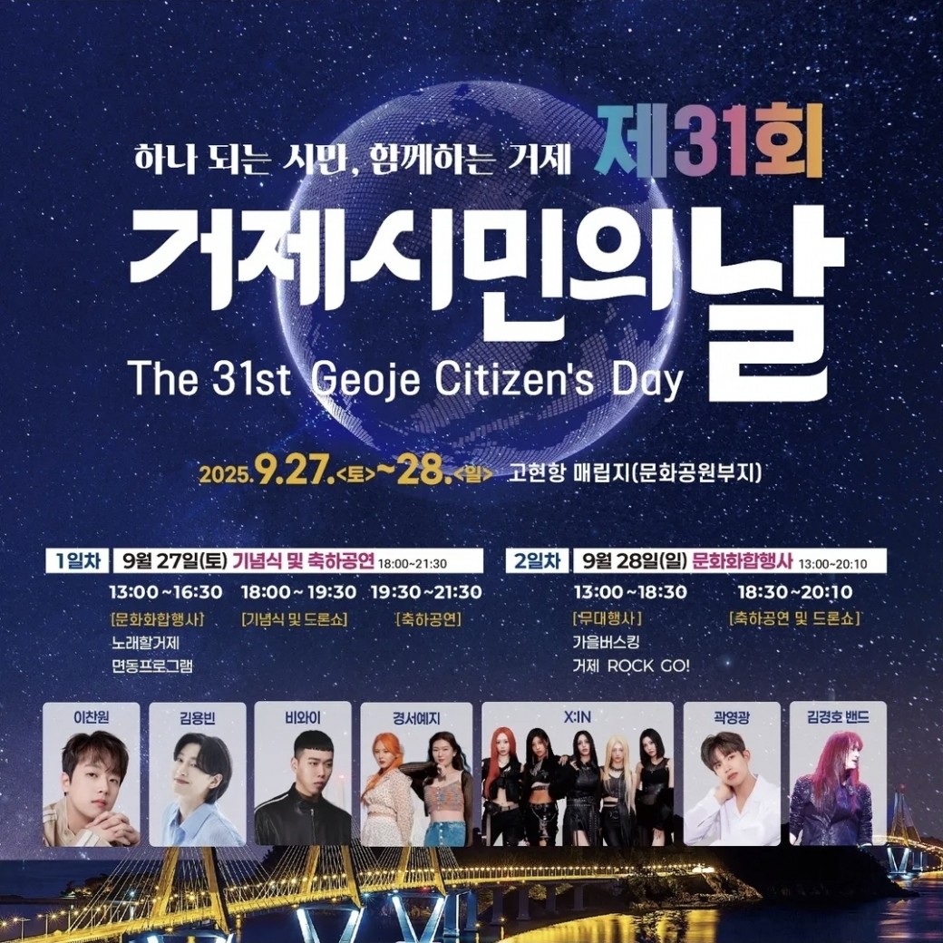 제31회 거제시민의 날이 9월 27일(토)부터 28일(일)까지 고현항 매립지에서 펼쳐집니다!