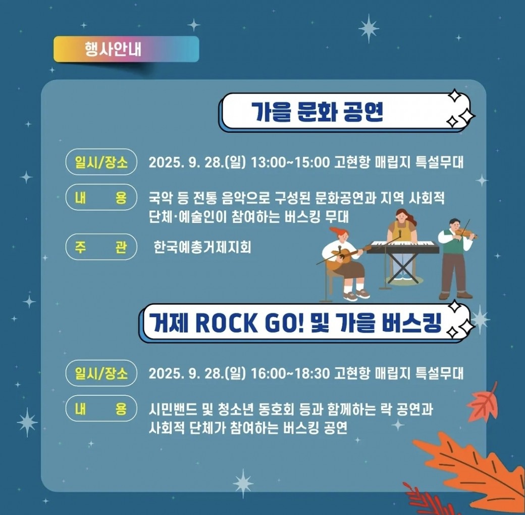 ( 사전접수 마감 / 현장접수 선착순 300명 가능) 가을 문화공연